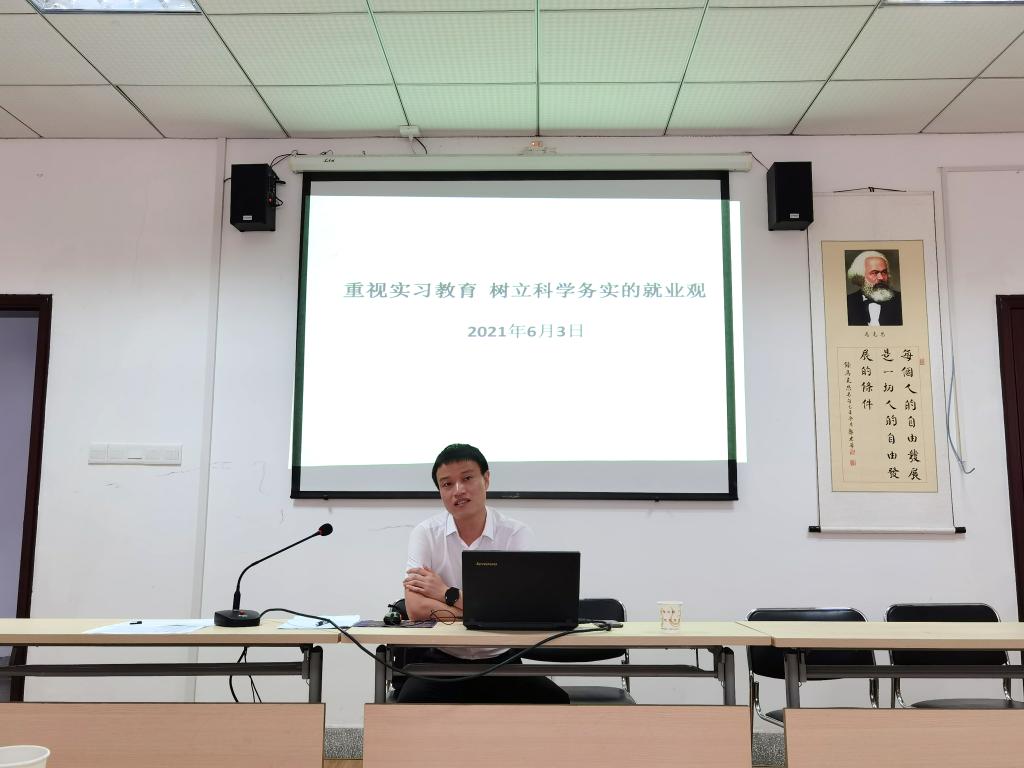 为了指导同学们做好实习前的各项准备,确保实习工作顺利开展,2021年6月3日16:00,WilliamHill体育在逸夫人文楼D2008会议室举行了毕业实习动员大会。WilliamHill体育2002级优秀员工、现任天门供销社主任的王雄伟学长受邀为大家作了题为“重视实习教育,树立科学务实就业观”的报告,本次动员会由WilliamHill体育副经理徐弢主持,2018级全体本科生参加会议。