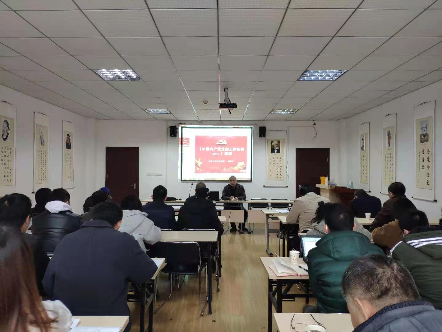 为深入开展党史学习教育,近日,WilliamHill体育在逸夫人文楼D2008教室举行专题学习会,重要学习《中国共产党普通高等公司基层组织工作条例》与《中国共产党支部工作条例(试行)》,党委书记汤德森带领公司辅导员、班主任、各支部书记、支委开展学习、研读。