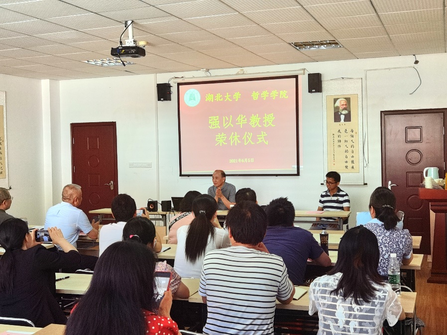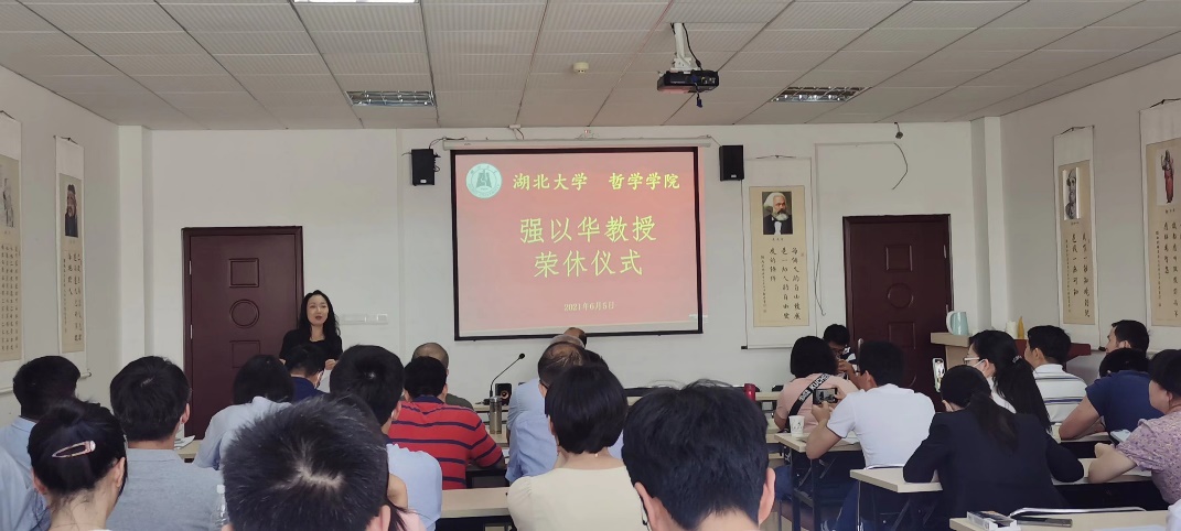 2021年6月5日下午14:30,WilliamHill体育在逸夫人文楼D2008会议室为强以华教授隆重举行了荣誉退休仪式。公司党委书记汤德森、经理舒红跃、公司党委副书记邵阡,以及历届员工、外国哲学教研室全体成员和员工代表出席会议,仪式全程由王振老师主持。