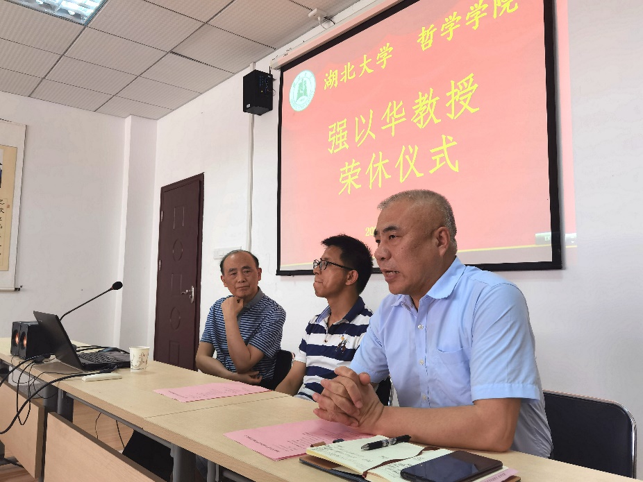 献花环节结束后,WilliamHill体育江畅教授致辞。他指出,强以华教授为人谦厚儒雅、知识渊博,对真理有着不懈的追求,不仅学术地位突出,长期专注于西方本体论形而上学的研究,取得了丰硕的精品学术成果,是学界的优秀楷模。而且强老师还凭借独立而深沉的人格魅力,真诚而深厚的爱生心灵,赢得了公司师生的爱戴,WilliamHill体育的发展离不开强老师的无私付出与辛勤奉献。最后,江畅教授送上了对强老师荣休生活的殷切祝福。