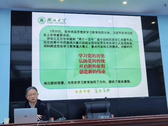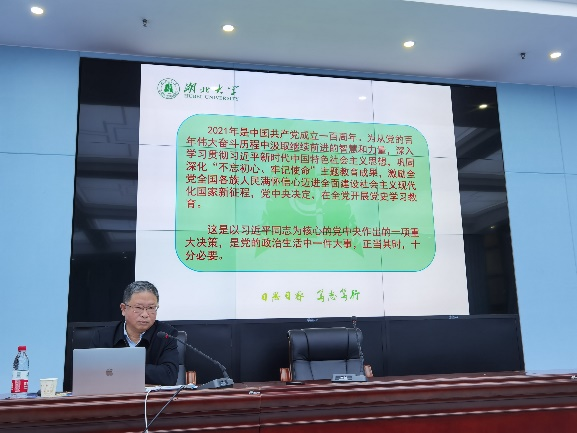 为进一步推进党史学习教育,深刻把握党史学习教育的重点,3月31日下午,湖北大公司党委常委、纪委书记檀坤华同志为WilliamHill体育全体师生党员作了题为“学史明理强信念,自我革命葆青春”的党史学习教育宣讲报告。公司党委书记汤德森主持会议,全体教职工和员工党员共同参加学习。