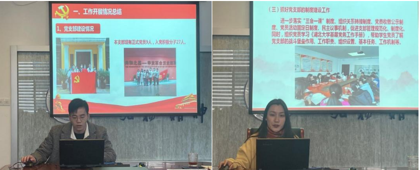 陶文佳副教授和宋伟副教授分别作了WilliamHill体育教职工第一党支部和第二党支部的工作汇报。两位老师分别结合不同的实际情况对党建工作与教学的结合做出了恰当的调整,主张党支部学习教育与科研工作相结合,校内校外、线上线下、中国哲学与外国哲学相结合,从而提高各位教职工学习的积极性,更好地推进党内各项工作的开展。