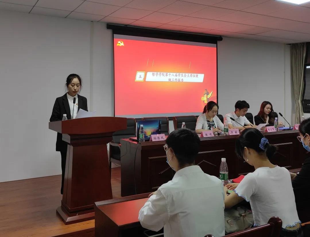 伍健在工作报告中总结了哲院团委和员工会在后疫情时代砥砺前行,锐意进取,深入贯彻落实十九大精神,结合实际情况积极开展各项线下工作所取得的成绩,思想教育、文体活动、学风建设和组织改革全面推进,并为今后的发展方向做出展望。