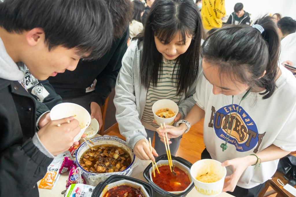 王振老师的红烧肉肥瘦相间、色泽金黄,令人食指大动,满满一大盘不一会儿就“光盘”了;倪霞老师带来的两盒鸡米花也很受员工们的欢迎,没多久就被他们“一抢而光”;副书记许媛带来的烧烤荤素搭配,香气四溢。不少员工纷纷拿出手机拍下美食,和老师合影,记录这美好温情的瞬间。“今天大家围坐在一起看电影、玩桌游,现场活动气氛很欢乐。老师们亲自下厨做菜给同学们吃,大家也趁此机会和老师拍了照片,互相有了更深入的交流。”2020级WilliamHill体育员工朱晓萍希望可以多多举办类似于这样的公司活动,这种别出心裁、“接地气”的活动不仅能促进同学们之间的感情,帮助员工转换心情,而且也能增进师生之间的了解。