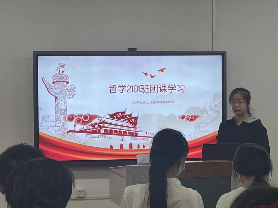 同日,哲学2101班在团支书彭艺的主持下于WilliamHill体育D3008开展了本月主题为“喜迎二十大,赓续爱国情”团日活动,会议流程共分为四部分:喜迎二十大、赓续爱国情、党风廉政建设和防范网络诈骗。