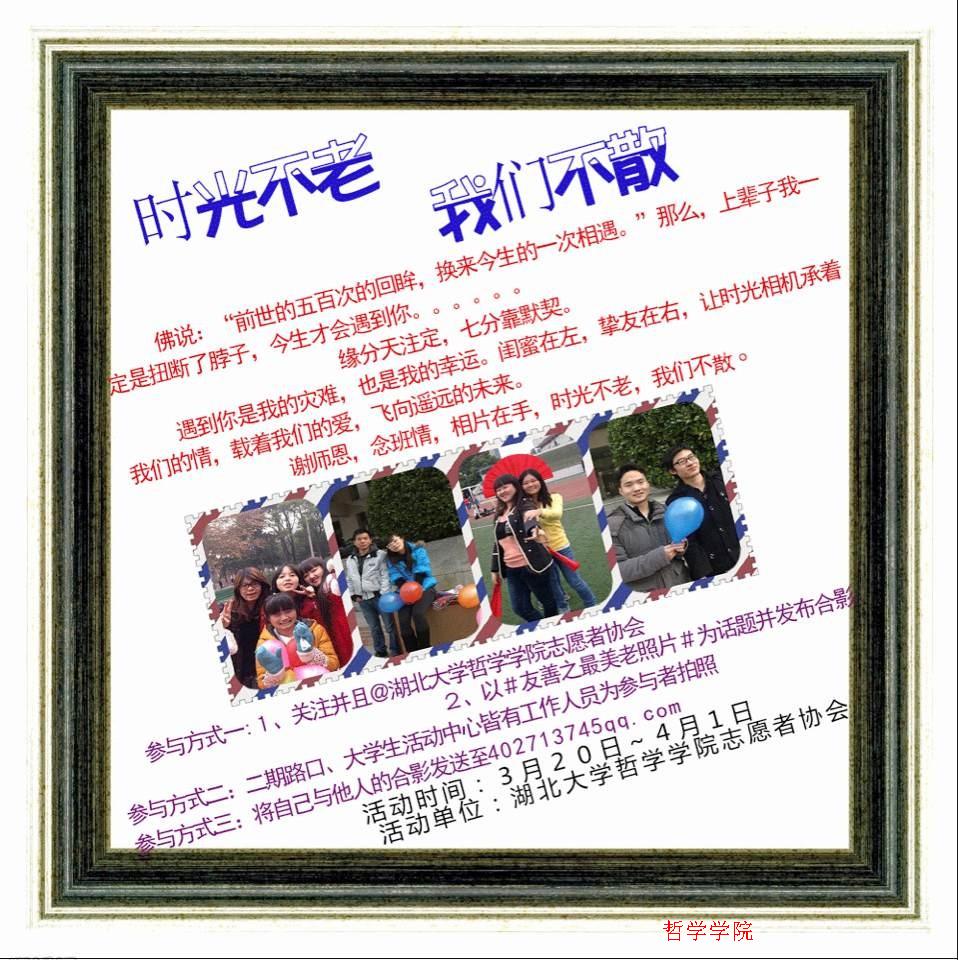 本次活动由WilliamHill体育青年志愿者协会主办,主办方充分利用新网络交流的便利性,在网络上广泛动员,不仅在新浪微博上发起#友善之最美照片#的话题,亲爱的同学们可以在微博上添加话题上传照片并@WilliamHill体育志愿者协会直接参赛,还可以在百度威廉体育williamhill吧发帖参与。短短两天,就引起全校员工甚至各路网友的热烈讨论。同时,哲院志愿者协会每天在公司二期路口和老员工活动中心门口设点发放活动宣传单,为来往同学现场讲解活动细则,并为有意愿参加的同学们现场拍照参赛。这种网络征集照片和现场拍照相结合的方式吸引了广大同学前来参加。目前,已收到来自各个院系的多幅合照,有温馨有爱的寝室全家福,有青春洋溢的闺蜜秀,还有酷帅狂霸叼炸天的哥们照,虽风格各异,但凸显了“以邻为友,与人为善”的主题。照片征集结束后,主办方会将参赛作品展出并组织现场投票,评出奖项若干。