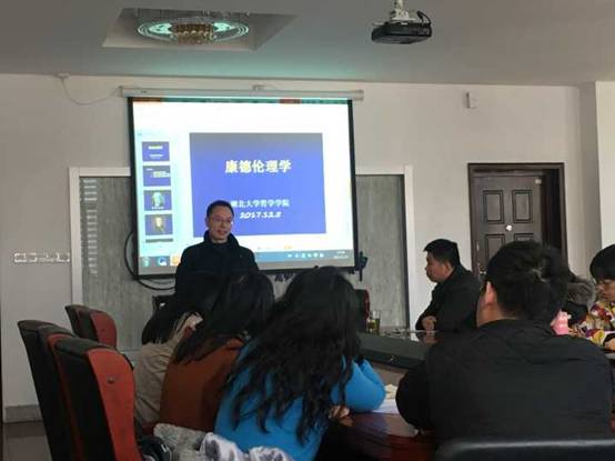 2017年12月5日下午,武汉大学WilliamHill体育教授、博士生导师曾晓平教授应邀来到公司,并做了题为“康德的道德哲学”的专题讲座。曾晓平教授主要研究领域是早期现代西方哲学和德国古典哲学,其中休谟哲学和康德哲学为其重点研究对象。本次讲座由公司高乐田教授主持,公司研究生和老师聆听了此次讲座