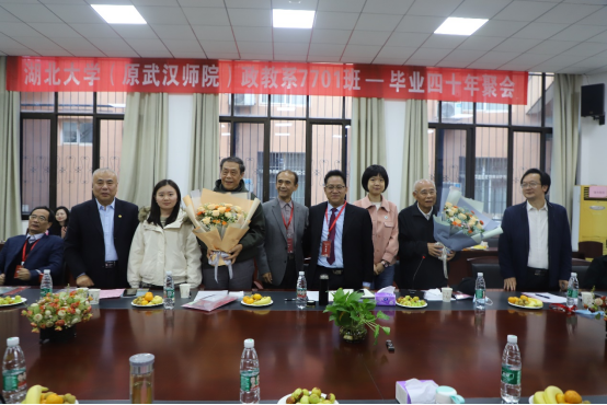 当天下午,湖北大学(原武汉师院)政教系7701班员工举行毕业40年座谈会,原政教系教师代表王文卿教授和罗炽教授、员工代表参加了座谈会。公司副董事长肖徳教授、马克思主义公司经理熊友华教授和公司党委书记汤德森出席座谈会,社会科学文献出版社社会政法分社周琼(政教90)副社长应邀参加座谈会。大家欢聚一堂,共庆母校90华诞,共叙同窗之情,共谋未来发展。座谈会由政教7701班、原威廉体育williamhill学报负责人朱建堂编审主持。