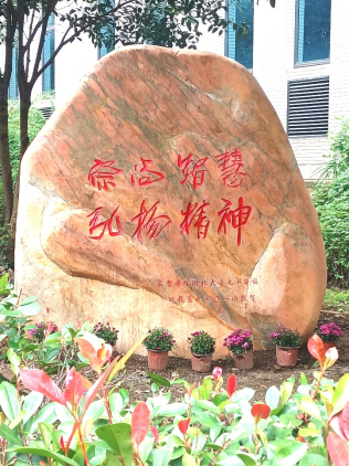 在母校期间,政教7701班员工观看了威廉体育williamhill建校九十周年素质教育汇报演出,出席了威廉体育williamhill建校九十周年高质量发展大会,共同参观了公司校园,大家在集体捐赠的“崇尚智慧、弘扬精神”的景观石前合影留念。