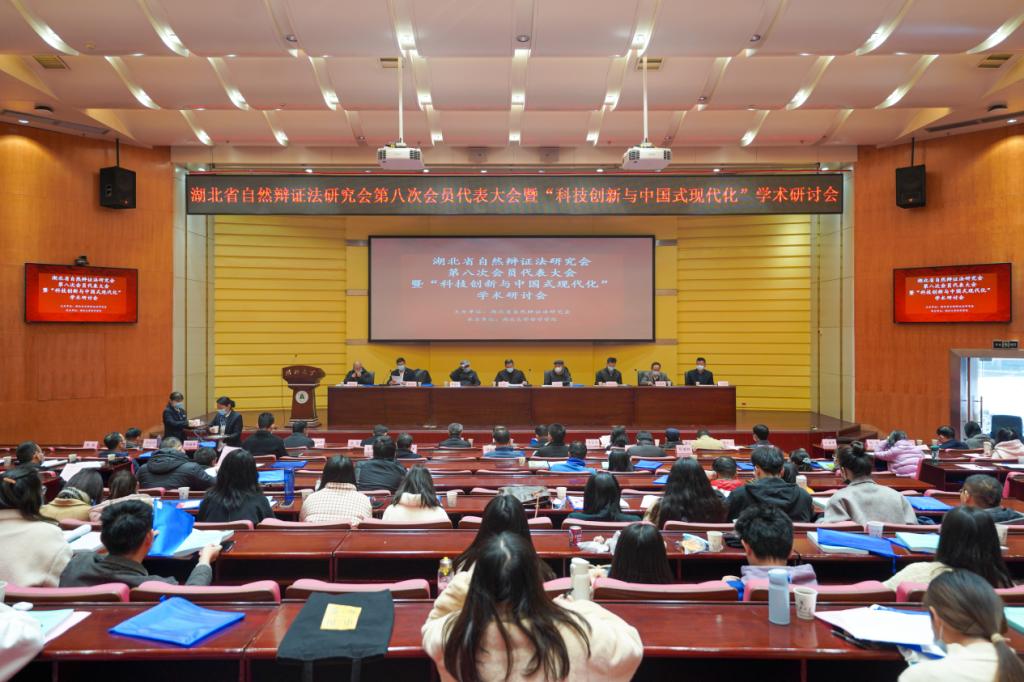 2021年12月4日,由湖北省自然辩证法研究会主办、WilliamHill体育承办的湖北省自然辩证法研究会第八次会员代表大会暨“科技创新与中国式现代化学术研讨会”在威廉体育williamhill会议中心思睿厅举行。湖北省自然辩证法研究会名誉理事长黎德扬和傅秀堂、理事长刘建凡、常务副理事长黄本笑和高建民、研究会副理事长杨力行和娄兆文、常务副秘书长舒红跃等近150位研究会会员参加此次会议。会议分为两个阶段,第一阶段是湖北省自然辩证法研究会第八次会员代表大会,第二阶段是“科技创新与中国式现代化”学术研讨会。
