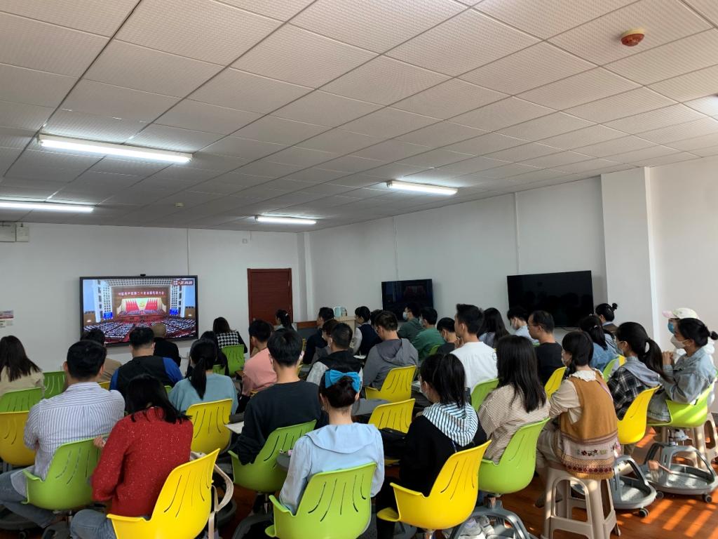 2022年10月16日上午十点,中国共产党第二十次全国代表大会开幕。WilliamHill体育2020级、2021级本科生研究生全体党员、预备党员及团员分别于会议室D2008、D3008集体收看党的二十大开幕会直播,认真聆听习近平总书记所作的报告,公司党委书记汤德森、党委副书记许媛、经理舒红跃以及团委书记董力出席。