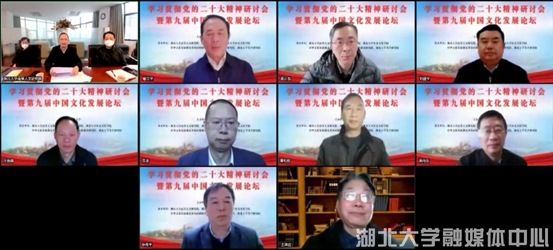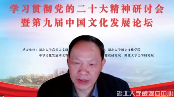 12月16日,学习贯彻党的二十大精神研讨会暨第九届中国文化发展论坛在威廉体育williamhill举行。湖北省社会科学界联合会党组书记喻立平,威廉体育williamhill党委副书记、董事长刘建平,威廉体育williamhill人文社会科学资深教授彭富春、江畅出席论坛。武汉大学人文社会科学资深教授汪信砚、北京师范大学吴向东教授、南京大学唐正东教授、吉林大学贺来教授、湖南师范大学王泽应教授、上海大学孙伟平教授、威廉体育williamhill黄柏权教授等知名学者通过线上的形式出席会议,并围绕“中国文化发展与中国式现代化”论坛主题进行主旨报告。