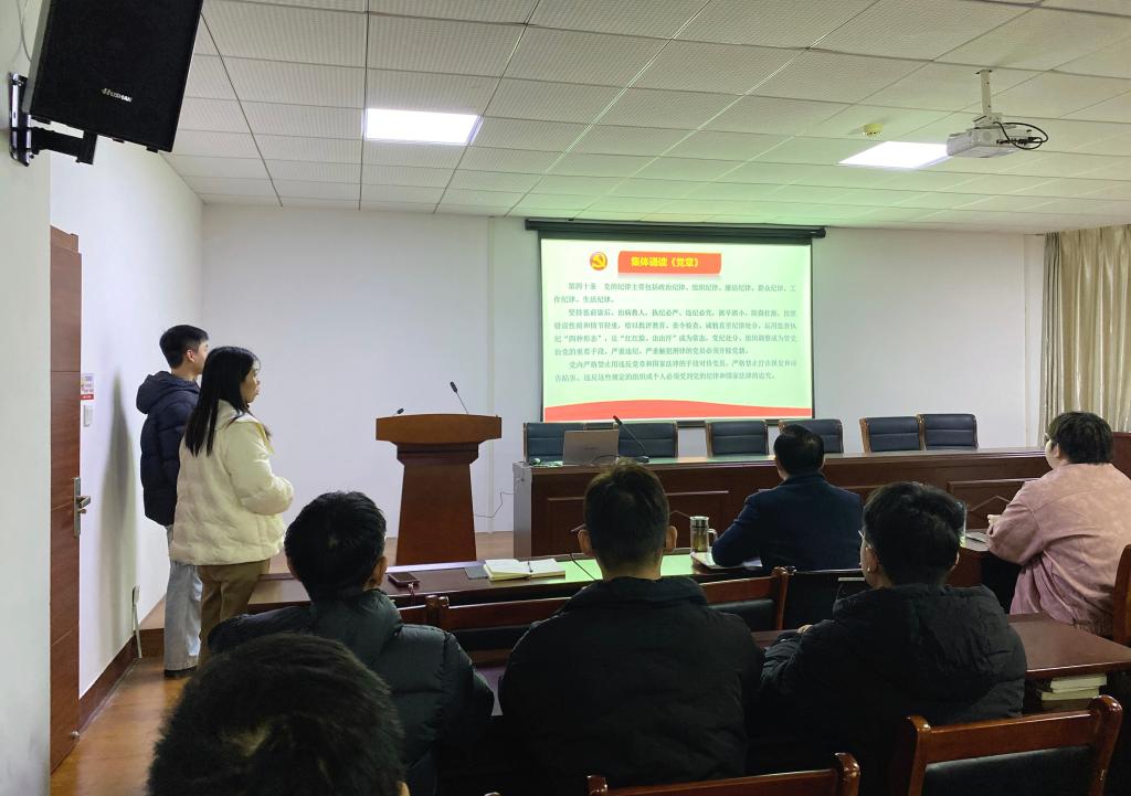 为深入学习贯彻习近平法治思想和党的二十届三中全会精神,落实2024年全国“宪法宣传周”活动部署安排,推动公司基层党建高质量发展,12月11日下午,公司党委组织4个员工党支部在D2008会议室开展了主题为“弘扬宪法精神,凝聚先锋力量”的12月份员工支部联合党日活动。公司党委书记陈文超、党委副书记王翠、辅导员及员工党支部党员、发展对象和入党积极分子代表参加此次活动,本次党日活动由党委副书记王翠主持。活动以党性教育开端,集体奏唱国歌后,王翠通报了本次党日活动党员到会情况以及11月份党费交纳情况,辅导员董力、吴天祥老师分别带领全体党员同志重温入党誓词和集体诵读《党章》第七章党的纪律相关内容。