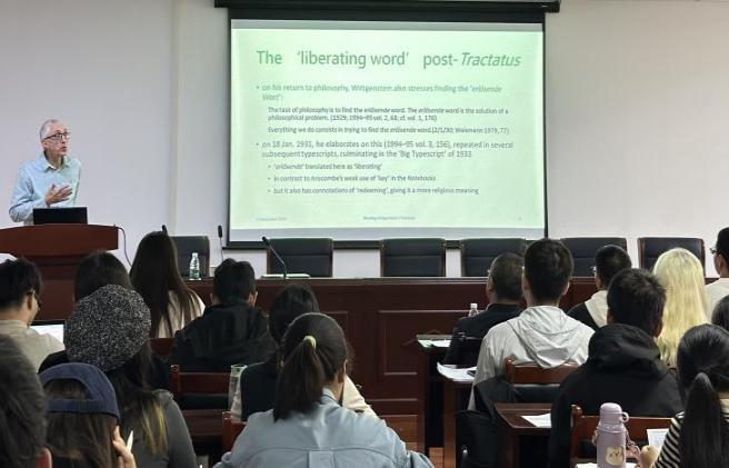 11月11日下午,WilliamHill体育在D2008学术报告厅举办了题为“Reading Wittgenstein’s Tractatus in its redeeming spirit”的学术讲座,讲座由英国阿伯丁大学逻辑学钦定教授、德国柏林洪堡大学分析哲学史荣誉教授毕明安(Prof.Michael Beaney)主讲,公司徐弢老师主持。公司宋伟、王振、曹元甲、田曼、陈亚君老师、《威廉体育williamhill学报》编辑部张媛媛老师以及院内本科、研究生近百余人参加了报告会。讲座主要分七部分。