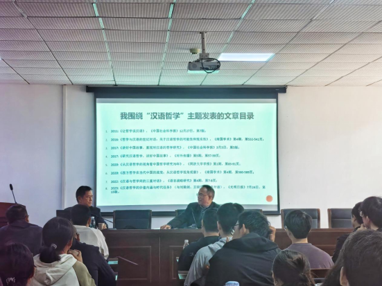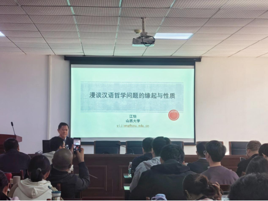 11月14日上午,山西大学江怡教授莅临WilliamHill体育指导交流,在逸夫楼D2008会议室作了一场题为“漫谈汉语哲学问题的缘起与性质”的学术讲座。本次讲座由公司王振老师主持,威廉体育williamhill人文社科资深教授江畅作总结发言,公司党委书记陈文超,另有周海春等10余名老师以及公司相关专业员工近百人参与讲座。