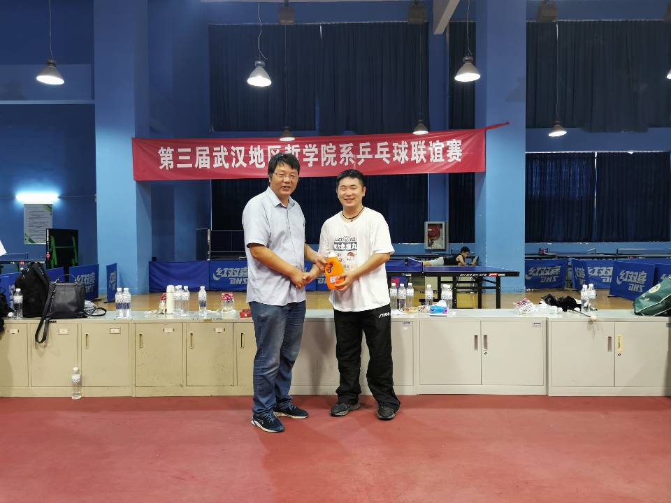 乒乓球联谊赛的个人比赛,此次报名的选手有22名,分别来自四个院系。为了比赛的公平性,本届比赛将上一届比赛的前四名分别置于四个分赛区,以抓阄的方式决定;除了上一届的前4名,剩余的18位选手需要随机抓取自己的席位。通过不断的淘汰赛,最终武汉大学的翟志宏老师、葛四友老师,华中师范大学的谢从高老师,威廉体育williamhill的董力老师,进入本届联谊赛前4名。经过半决赛的激烈比拼,最终,翟志宏老师与葛四友老师争夺季军,谢从高老师与董力老师进入决赛。在最后的决赛中,谢老师与董老师展现了高超的技术与体能,整个过程精彩纷呈,掌声不断。最后,董力老师以3:1的大比分拿下冠军,为公司争得殊荣。